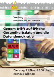 Vor 15 Jahren stellte in den USA Steve Jobs das iPhone vor, und die Google Spin-off Firma 23andme begann Genomanalysen direkt an Kunden anzubieten. In der Schweiz derweilen beschloss der Bundesrat, ein Gesetz für ein elektronisches Patientendossier zu entwickeln. In der Zwischenzeit hat jeder von uns ein Smartphone in der Tasche, Millionen von Menschen haben ihr Genom analysieren lassen, aber erst etwa 6000 Personen besitzen ein elektronisches Patientendossier, und die Schweiz droht zum europäischen Schlusslicht in der Digitalisierung zu werden. Im Vortrag wird aufgezeigt, wie unsere Gesundheit aus dem Zusammenspiel unseres Genoms und Umweltfaktoren wie Bildung, Ernährung und Bewegung, die oft mit oder ohne Zustimmung via Smartphone Sensoren erfasst werden, entsteht und wie wir die Herrschaft über unsere Gesundheitsdaten zurückgewinnen müssen, um uns aus der digitalen Abhängigkeit von multinationalen Konzernen lösen zu können.
