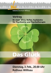 Was macht uns glücklich? Wie entwickelt sich das Glücksgefühl im Laufe unseres Lebens? Gibt es ein ewiges Unglücklichsein? In diesem Vortrag wird eine Darstellung des Glücklichseins mit all seinen Facetten aus der Perspektive älterer Menschen angestrebt: Das Glück aus psychologischer, individueller, ethischer, religiöser und medizinischer Sicht. Des Weiteren werden die Zusammenhänge zwischen Lebenserfahrung, Persönlichkeitsreife und mentaler Gesundheit in interaktiver Form dargestellt.