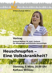 Wenn der Frühling kommt, beginnt die Leidenszeit der Pollenallergiker. Heuschnupfen scheint eine der Volkskrankheiten mit den höchsten Zuwachsraten zu sein. Je nach Region leiden bis zu 30 Prozent der Bevölkerung an Heuschnupfen. Im Vortrag werden Ursachen, Symptome, vorbeugende Massnahmen und Behandlungsmöglichkeiten besprochen und erläutert.