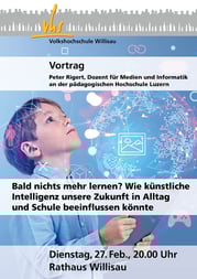 Die künstliche Intelligenz hat es in unseren Alltag, unseren Beruf und längst bis in unsere Schulzimmer geschafft. Wir alle nutzen diese technologische Errungenschaft - oft ohne es wirklich zu realisieren. Es drängt sich die Frage auf, wie man das Potenzial der KI im Alltag, insbesondere für die Bildung nutzen kann und gleichzeitig die Gefahren nicht ausser Acht lässt. Wie verändert sich unser Verhältnis und das künftiger Generationen zu Wissen und Verstehen? Peter Rigert von der pädagogischen Hochschule Luzern setzt sich mit dem Einfluss von Technologien auf das Lernen und der damit folgenden Transformation der Schule auseinander. Der Vortrag geht auf aktuelle Anwendungsfälle der KI im Unterricht ein und skizziert, welche Szenarien sich in der Zukunft abspielen könnten.